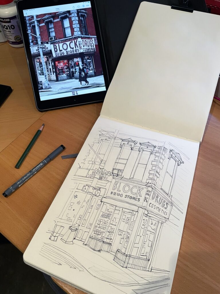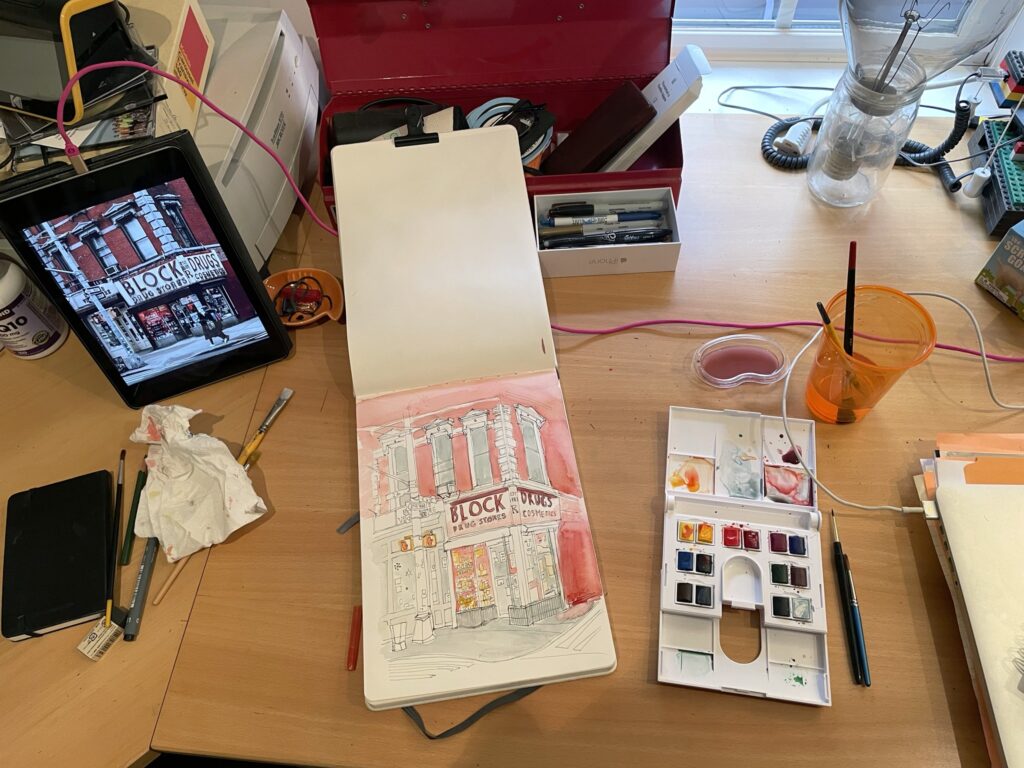 More urban sketching from my desk…Maybe a little too much detail… somewhere between the last two steps is my goal.